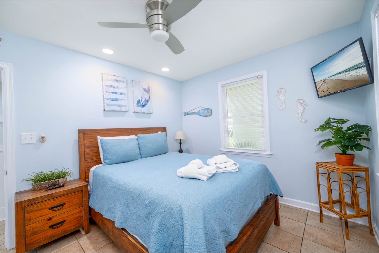 - Bed Type: 4-bedroom house. With 2 king beds, 2 queen beds, and 1 futon,